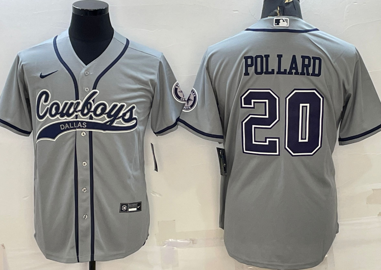 Dallas Cowboys #20 Tony Pollard Baseball Jersey Grey