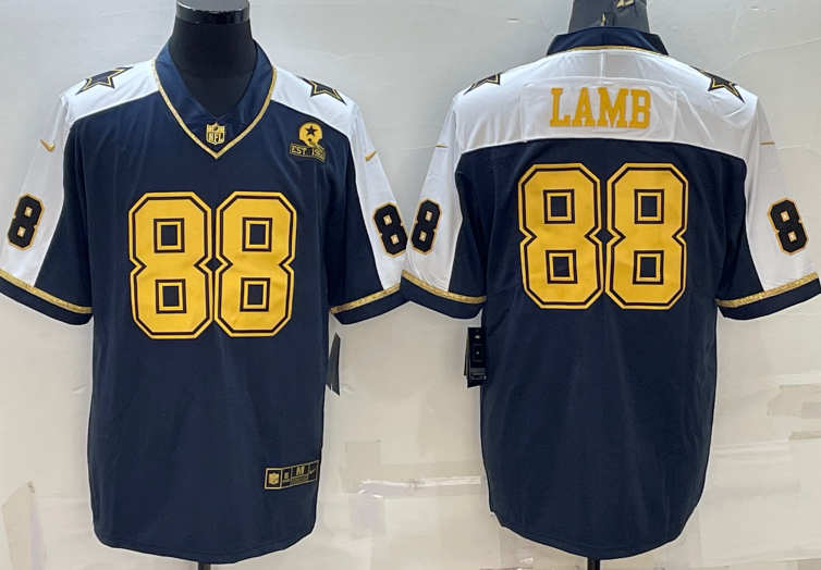 Dallas Cowboys #88 CeeDee Lamb Thanksgiving With Golden Number Limited Jersey Blue