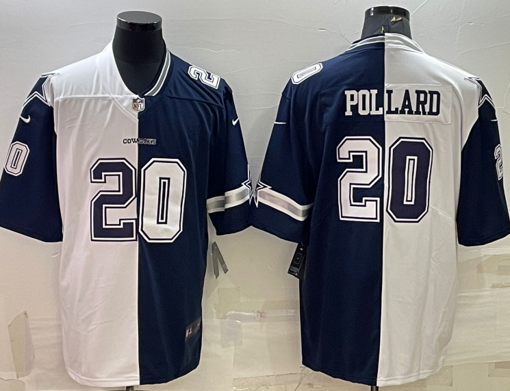 Dallas Cowboys #20 Tony Pollard Split Limited Jersey White Blue