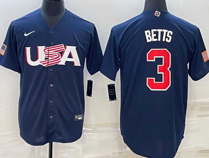 Team USA #3 Mookie Betts Jersey Blue