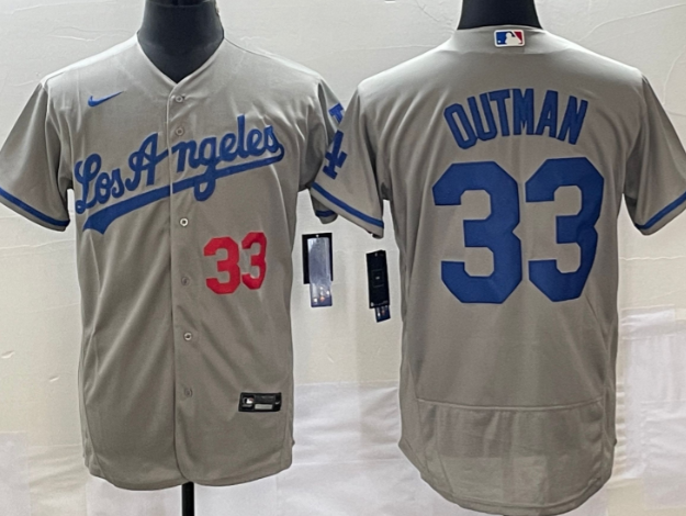 Nike Los Angeles Dodgers #33 James Outman Los Angeles Flexbase Jersey Grey