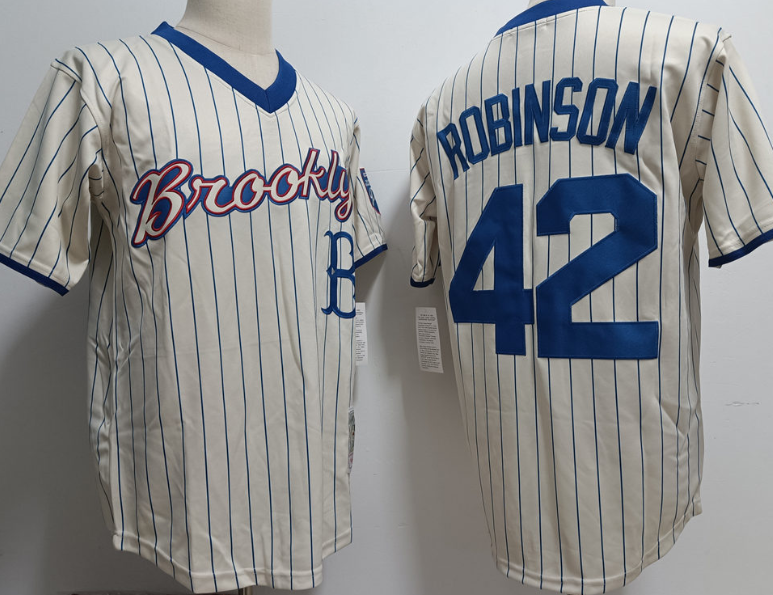 Los Angeles Dodgers #42 Jackie Robinson Pinstrip Throwback Jersey Cream