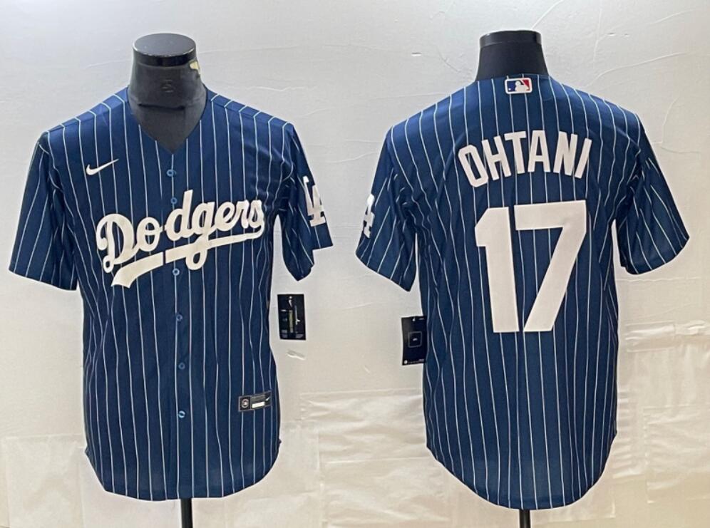 Los Angeles Dodgers #17 Shohei Ohtani Baseball Jersey Blue Pinstripes