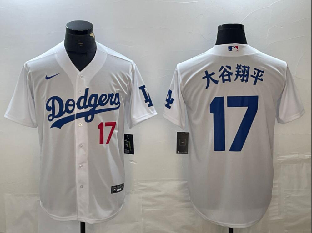 Los Angeles Dodgers #17 大谷翔平 with Red Number Cool Base Jersey White