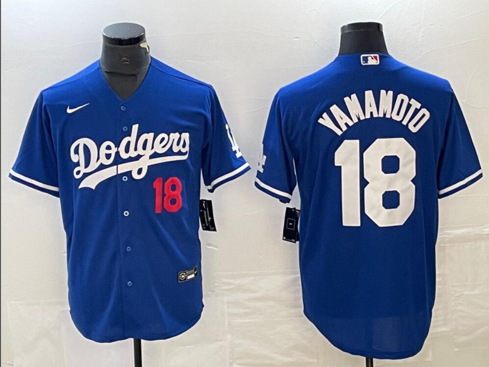 Los Angeles Dodgers #18 Yoshinobu Yamamoto with Red Number Cool Base Jersey Blue