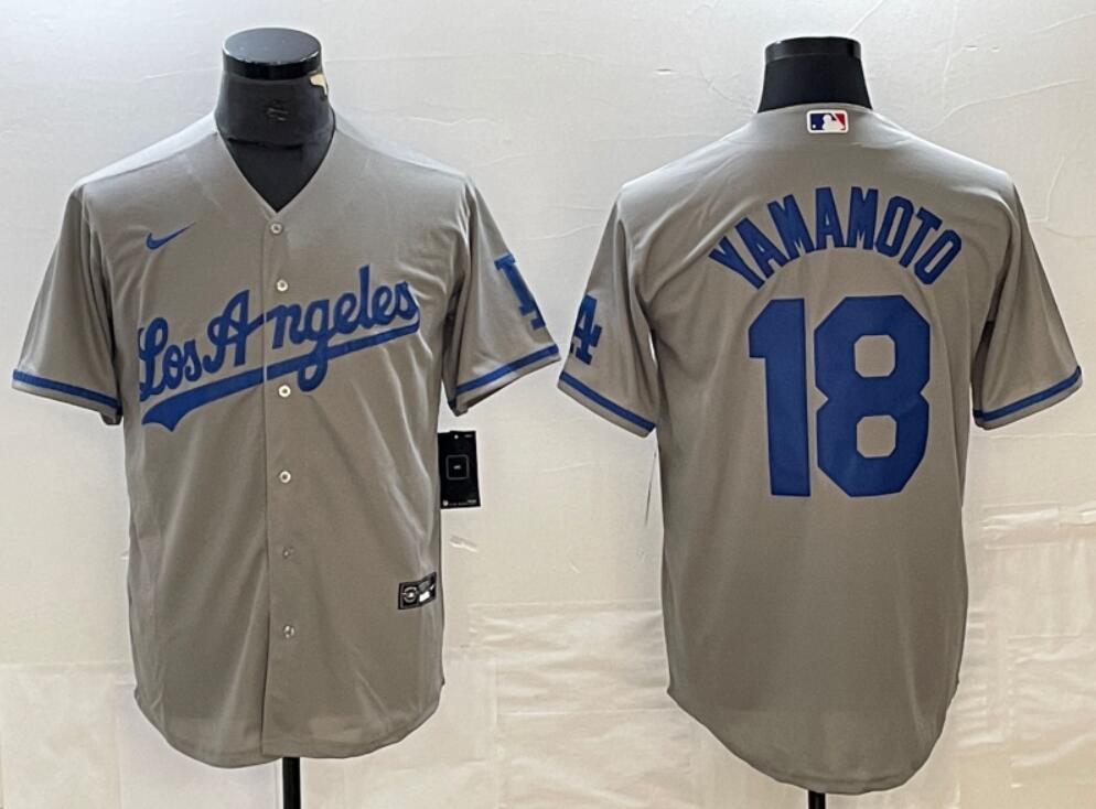 Los Angeles Dodgers #18 Yoshinobu Yamamoto Cool Base Jersey Gray