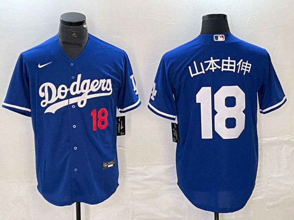 Los Angeles Dodgers #18 山本由伸 Cool Base Jersey Blue with Red Number