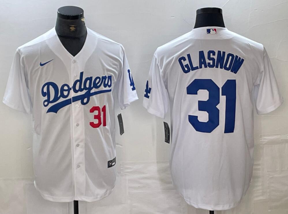 Los Angeles Dodgers #31 Tyler Glasnow Cool Base Jersey White with Red Number