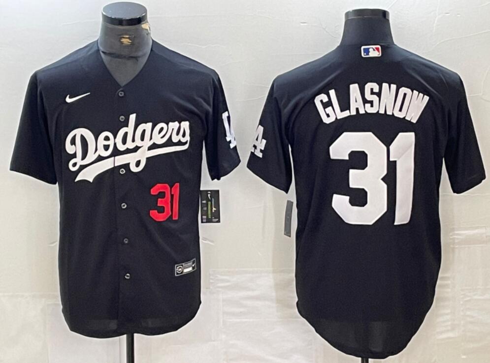 Los Angeles Dodgers #31 Tyler Glasnow Cool Base Jersey Black with Red Number