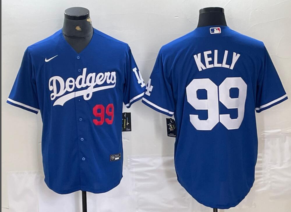 Los Angeles Dodgers #99 Joe Kelly with Red Number Cool Base Jersey Blue