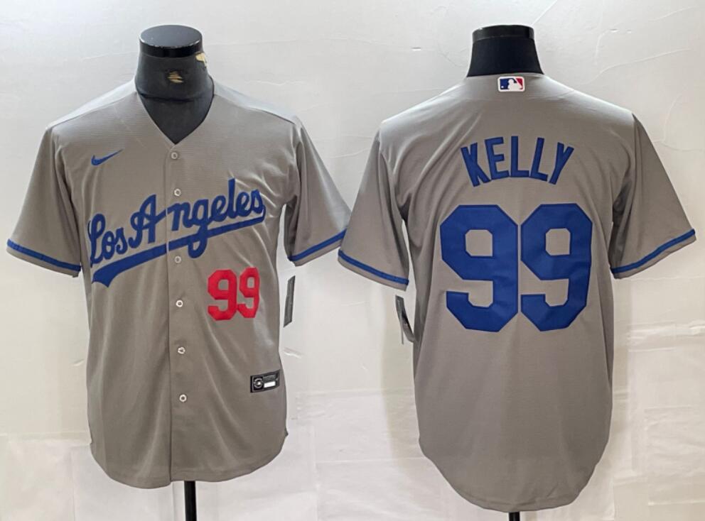 Los Angeles Dodgers #99 Joe Kelly with Red Number Cool Base Jersey Grey