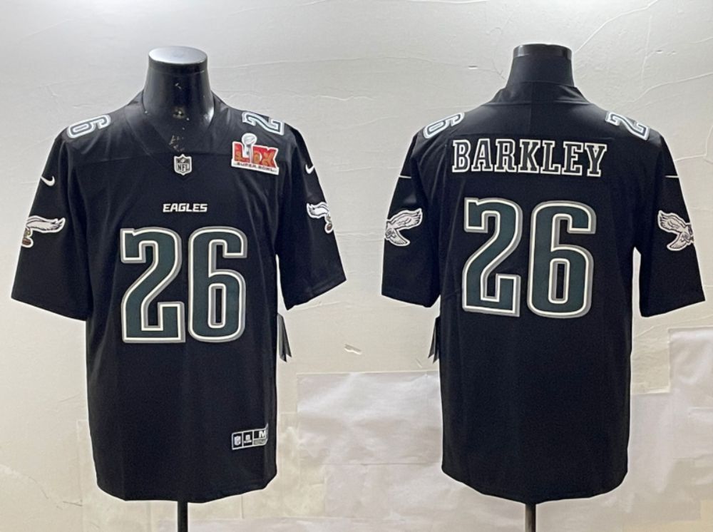 Philadelphia Eagles #26 Saquon Barkley with Green Number Fashion Super Bowl Patch Limited Jersey Black