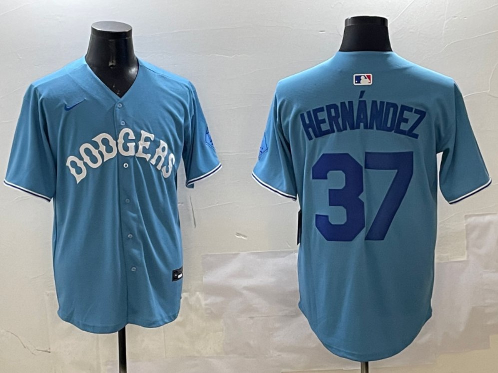Los Angeles Dodgers #37 Teoscar Hernández with Royal Number Classic Fashion Jersey Baby Blue.jpg)