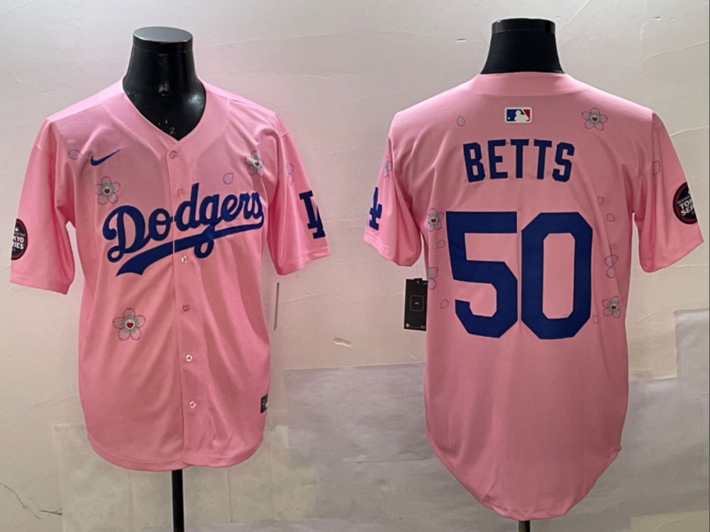 Los Angeles Dodgers #50 Mookie Betts Tokyo Series Cool Base Jersey Pink