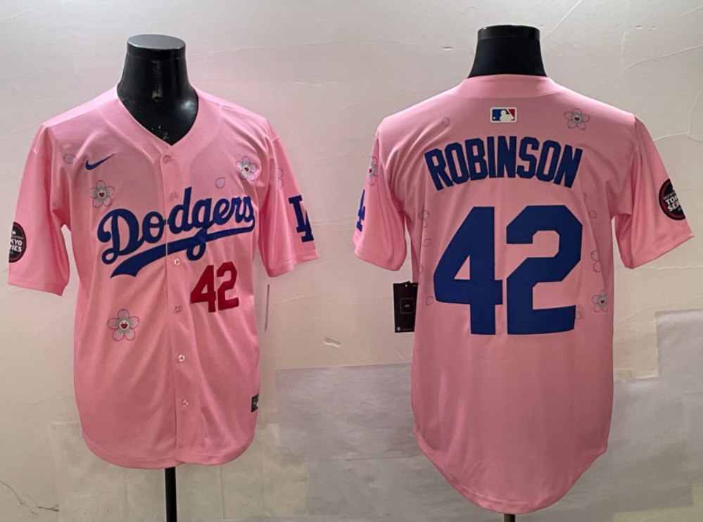 Los Angeles Dodgers #42 Jackie Robinson Tokyo Series Players Limited Jersey Pink