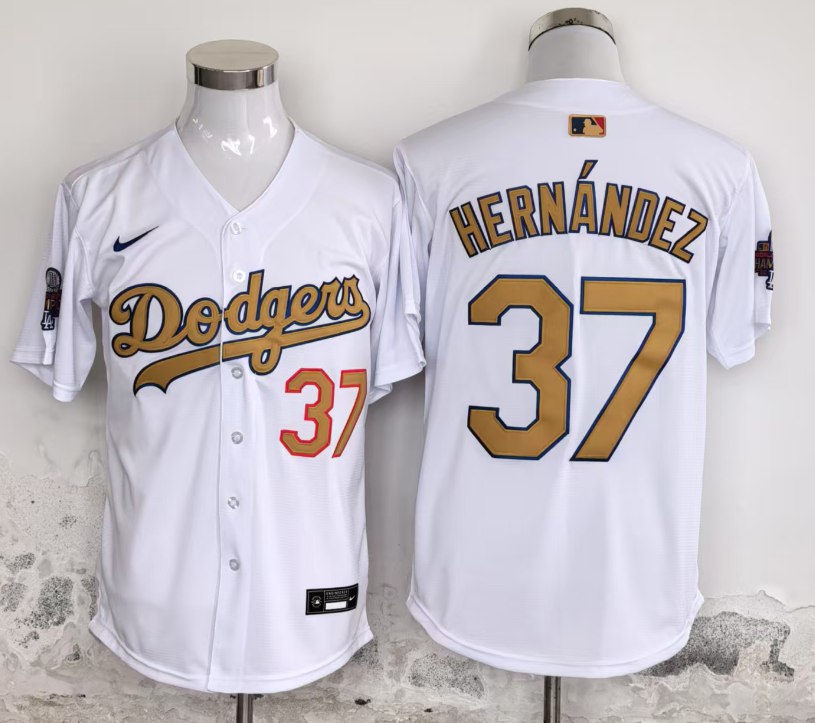 Los Angeles Dodgers #37 Teoscar Hernández 2025 Gold Program Players Limited Jersey White