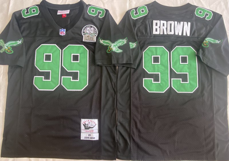 Philadelphia Eagles #99 Jerome Brown with Kelly Green Number Throwback Jersey Black