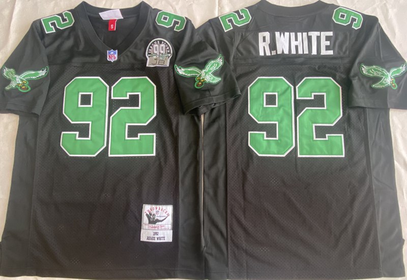 Philadelphia Eagles #92 Reggie White with Kelly Green Number Throwback Jersey Black