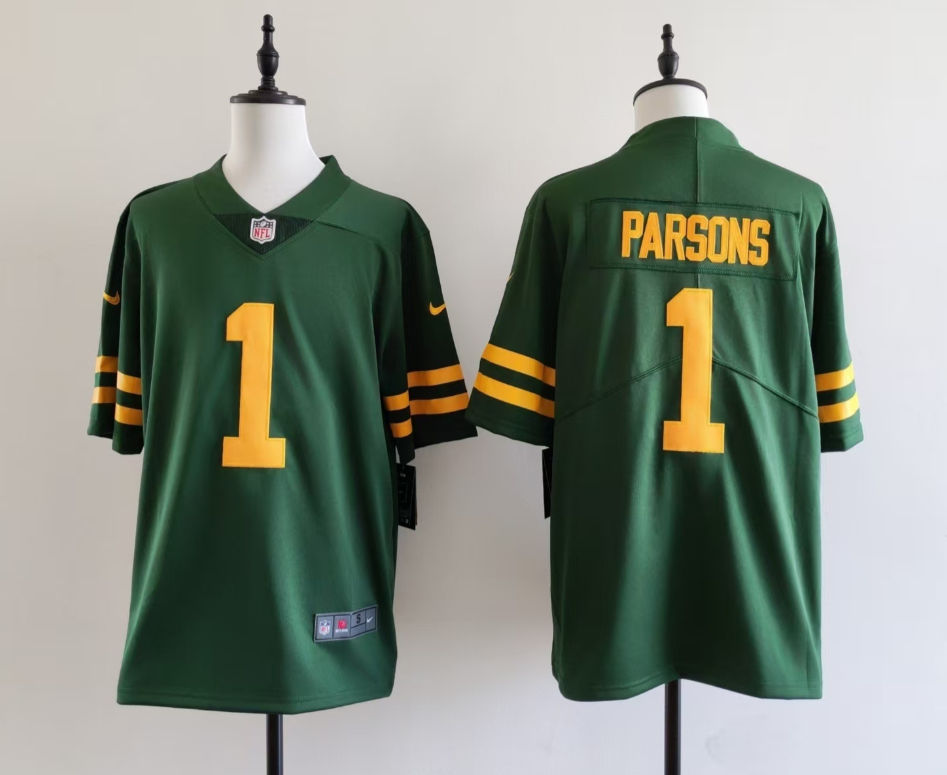 Green Bay Packers #1 Micah Parsons with Yello Number Throwback Limited Jersey Green