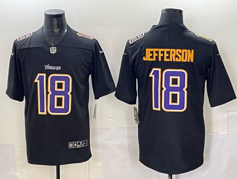 Minnesota Vikings #18 Justin Jefferson with Purple Number Fashion Limited Jersey Black