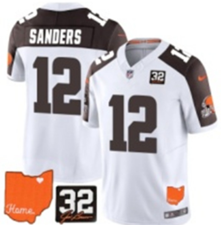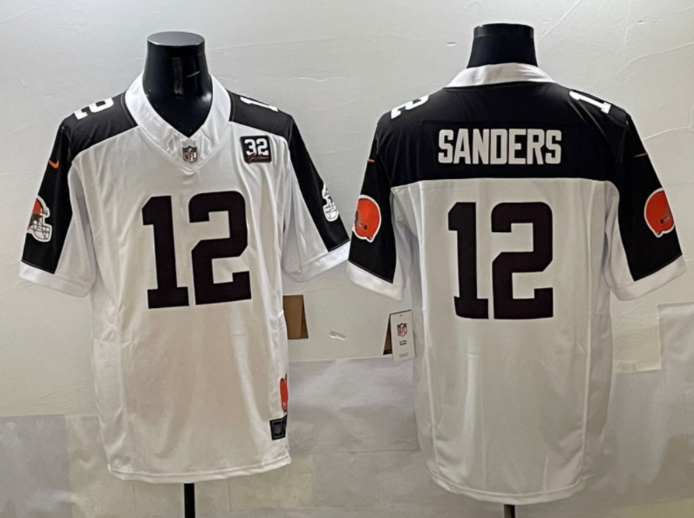 Cleveland Browns #12 Shedeur Sanders with Brown Shoulders F.U.S.E Limited Jersey White