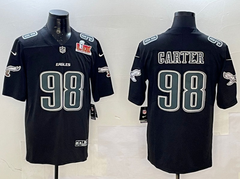 Philadelphia Eagles #98 Jalen Carter with Green Number Fashion Super Bowl Patch Limited Jersey Black