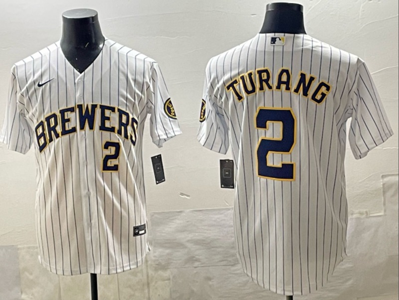 Milwaukee Brewers #2 Brice Turang Pinstripes Limited Jersey White
