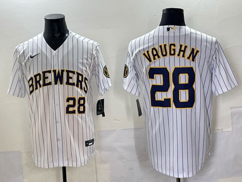 Milwaukee Brewers #28 Andrew Vaughn Pinstripes Limited Jersey White