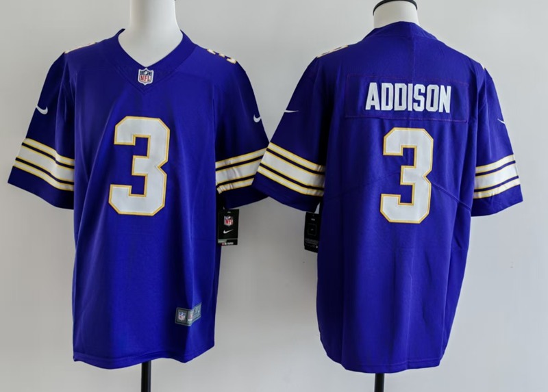 Minnesota Vikings #3 Jordan Addison Throwback Limited Jersey Purple