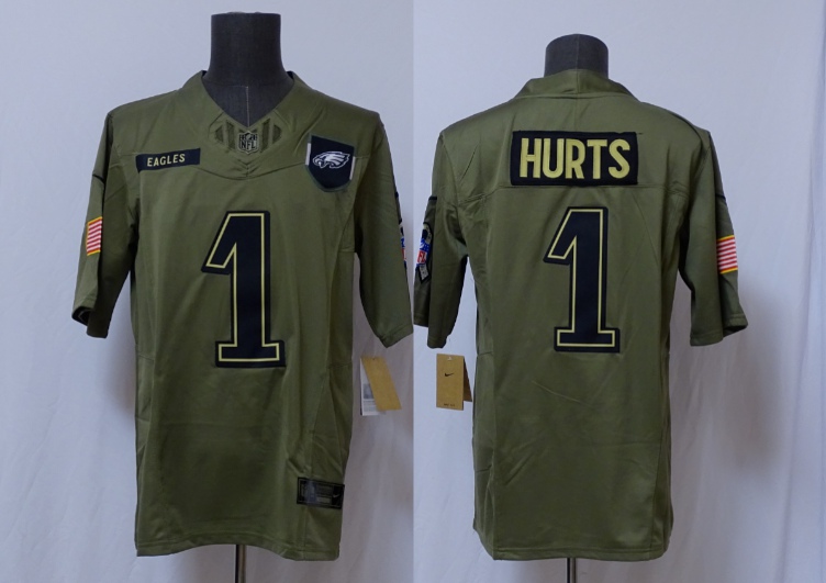 Philadelphia Eagles #1 Jalen Hurts 2025 Salute to Service Limited Jersey Green