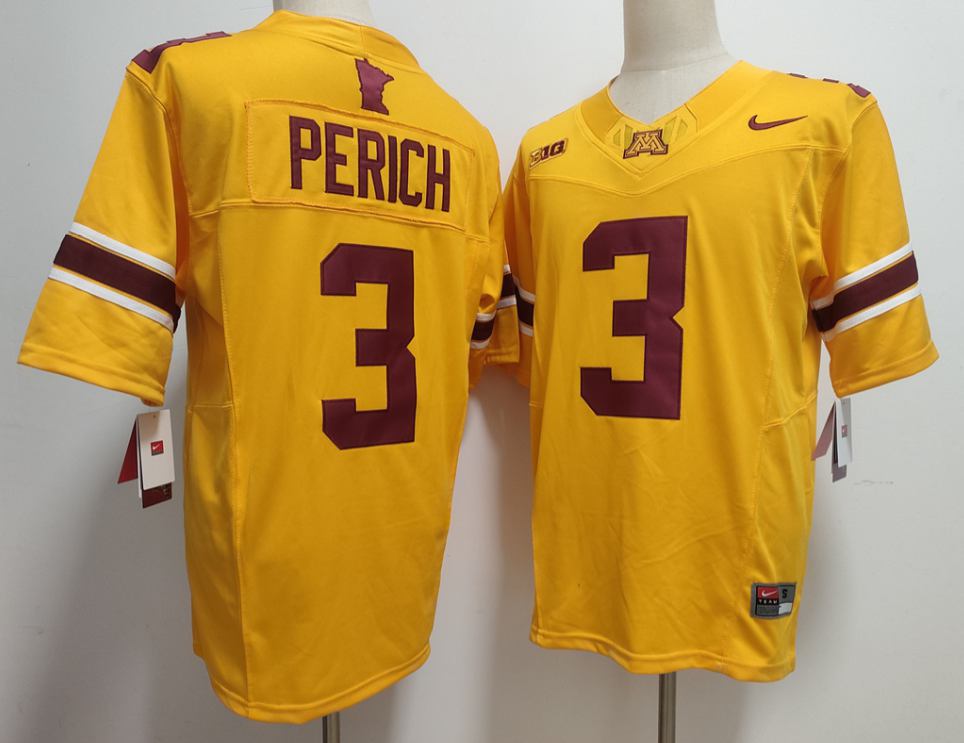 Minnesota Golden Gophers #3 Koi Perich F.U.S.E Limited Jersey Gold