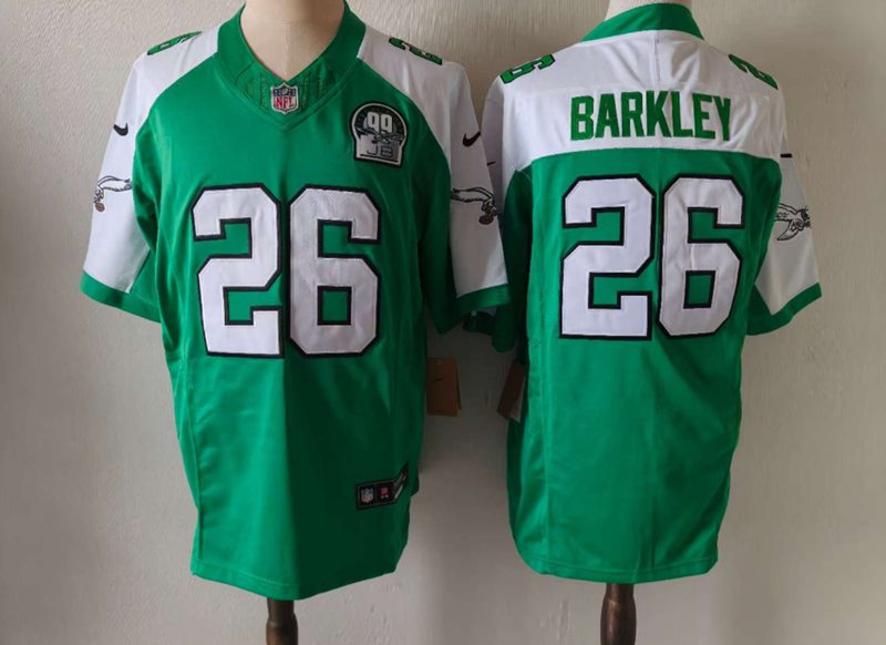 Philadelphia Eagles #26 Saquon Barkley with White Shoulders Limited Jersey Kelly Green