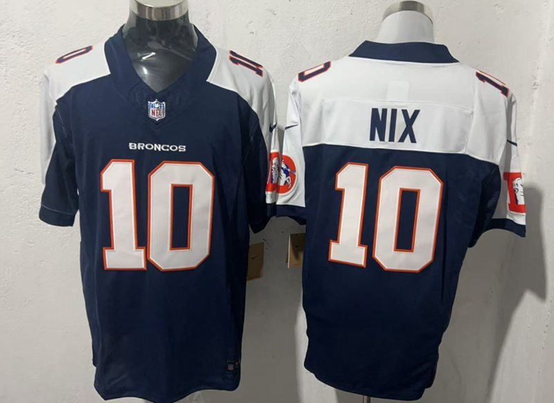 Denver Broncos #10 Bo Nix with White Shoulders Vapor F.U.S.E. Limited Jersey Navy