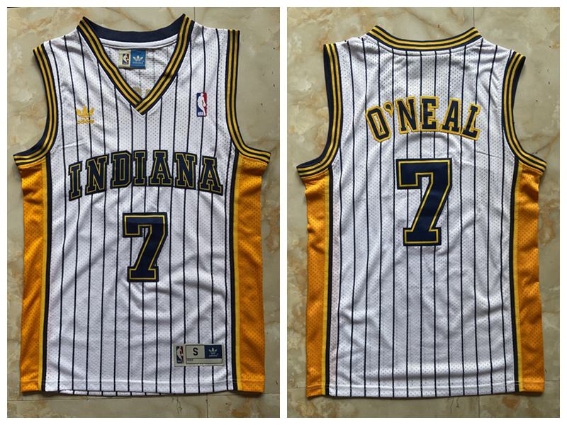 Indiana Pacers #7 Jermaine O'Neal Pinstripes Throwback Jersey White