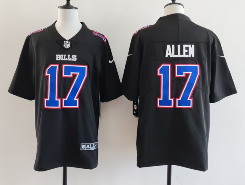 Buffalo Bills #17 Josh Allen with Blue Number Fashion Limited Jersey Black