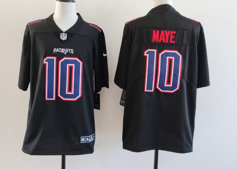 New England Patriots #10 Drake Maye with Blue Number Fashion Limited Jersey Black