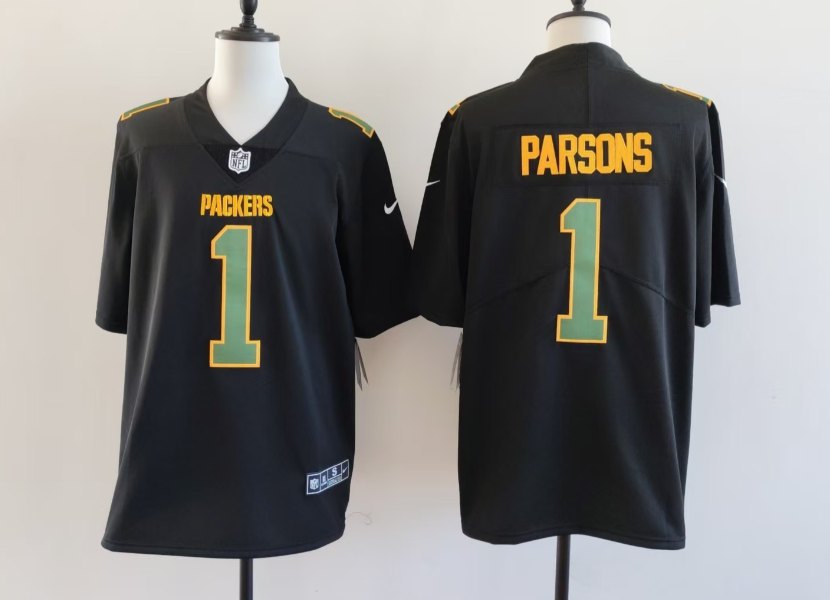 Green Bay Packers #1 Micah Parsons with Green Number Fashion Limited Jersey Black