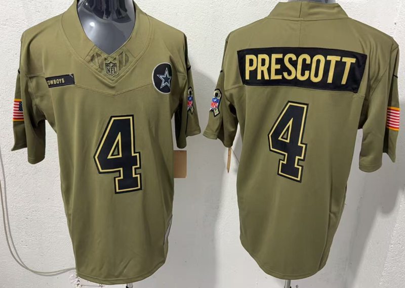 Dallas Cowboys #4 Dak Prescott 2025 Salute to Service Limited Jersey Green