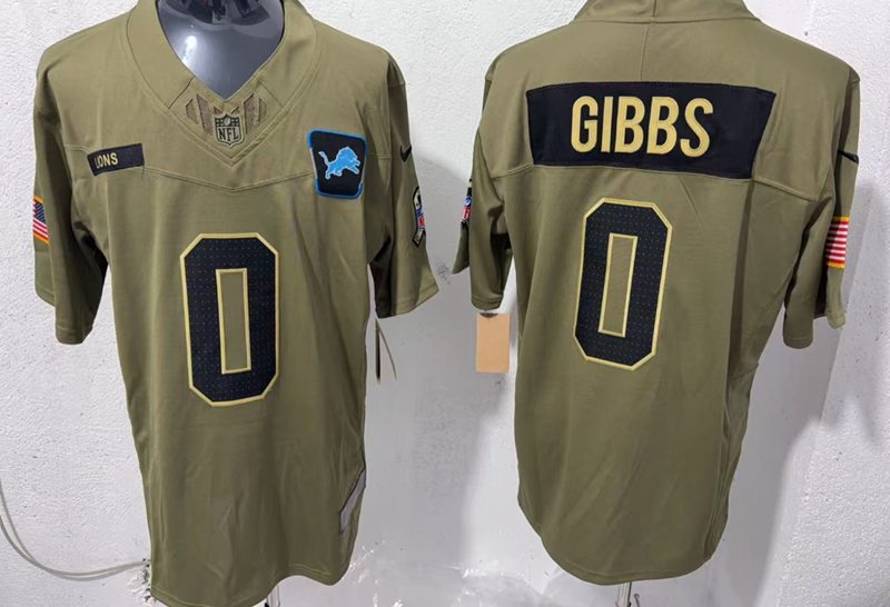 Detroit Lions #0 Jahmyr Gibbs 2025 Salute to Service Limited Jersey Green