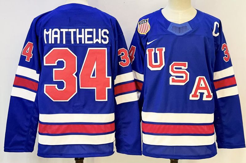 Team USA #34 Auston Matthews 2026 Winter Olympics Jersey Blue