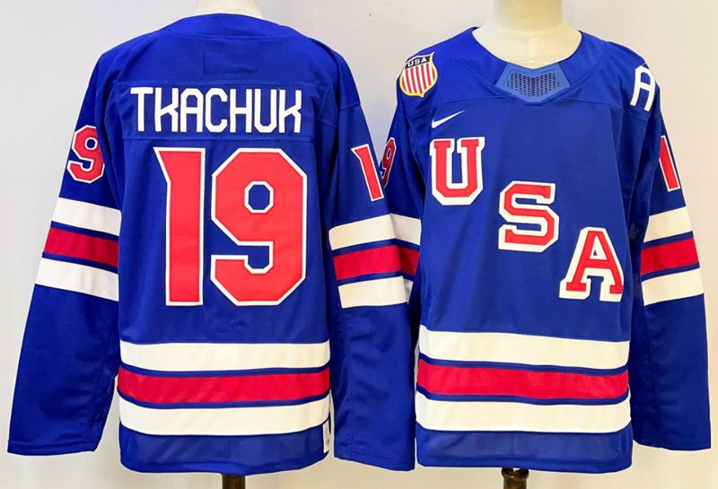 Team USA #19 Matthew Tkachuk 2026 Winter Olympics Jersey Blue