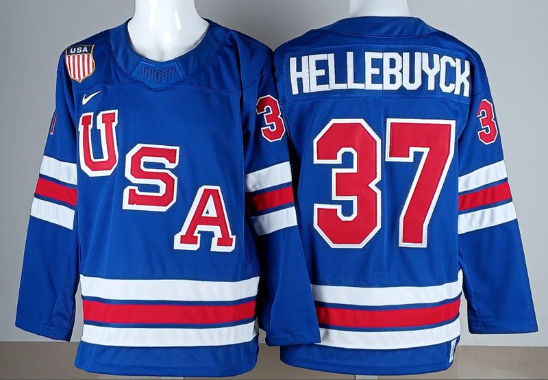 Team USA #37 Connnor Hellebuyck 2026 Winter Olympics Jersey Blue
