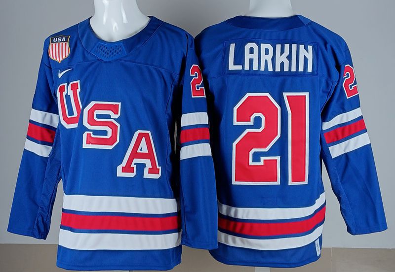 Team USA #21 Dylan Larkin 2026 Winter Olympics Jersey Blue