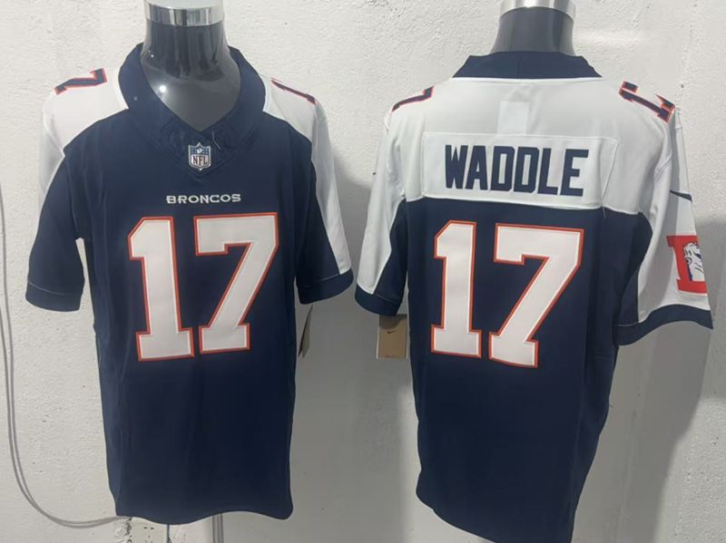 Denver Broncos #17 Jaylen Waddle with White Shoulders Limited Jersey Navy